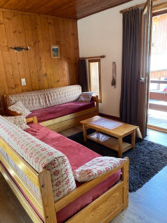 Dans chalet familial, proche pistes, avec balcon orienté sud et 2 salles de bain. Cuisine intégrée très récente et fonctionnelle.